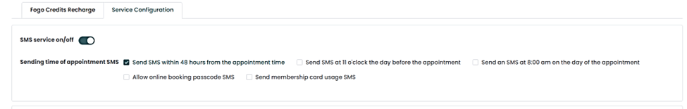 Step 2: Toggle the SMS service on/off switch to activate or deactivate the appointment SMS feature.