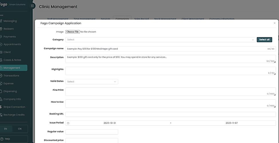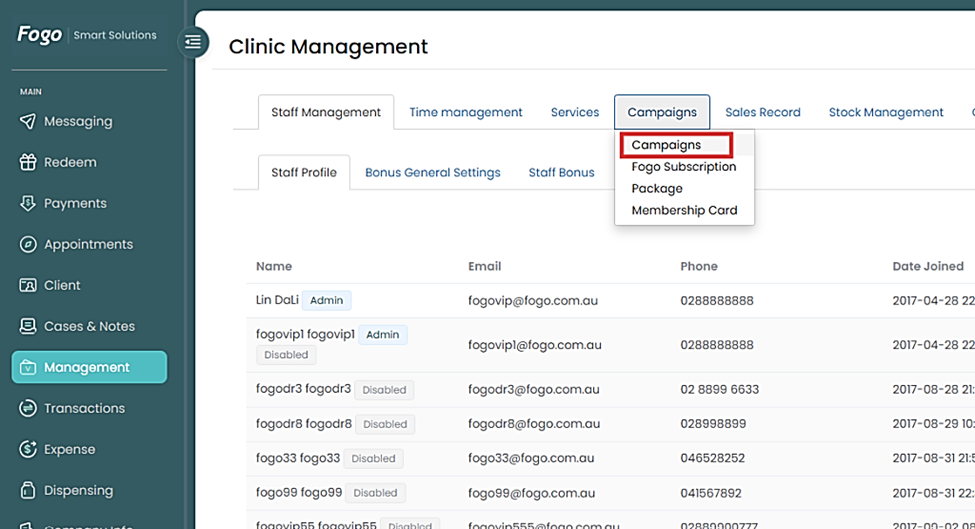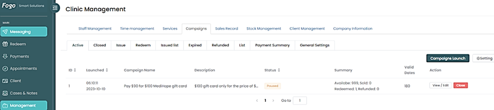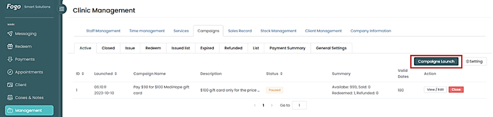 Step 3. Go to menu Management> Campaigns >Campaign Launch.