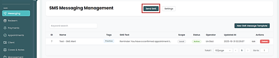 Step 3: Once saved, your template will appear and you have the option to edit when necessary. Then set your SMS alert.
