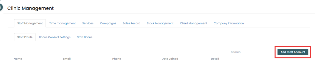 Step 1: Go to management > Staff management. Click ‘Add Staff Account’