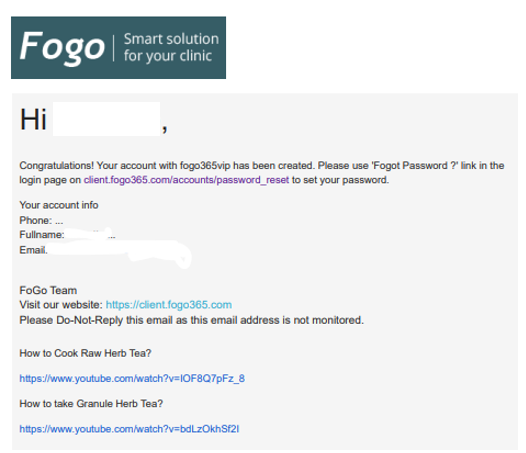 Step 3: An email will be sent to your practitioner/staff. Your practitioner/staff need to reset the password via ‘Forgot Password’ button.