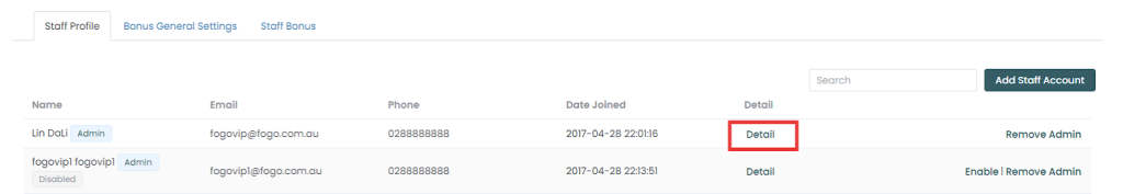 Step 2: Locate the practitioner/staff and click ‘Details’