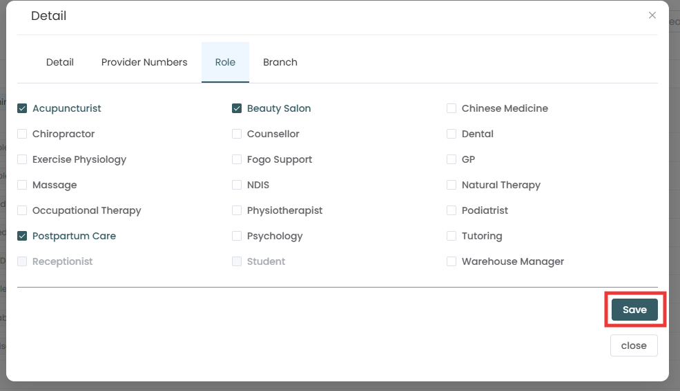 Step 3: Tick or untick the roles. Make sure at least one role is selected.