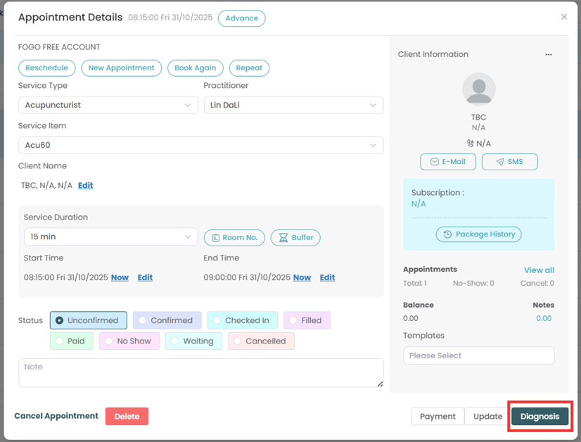 Step 2: Click the “Diagnosis” button on the bottom right corner of the pop up window.