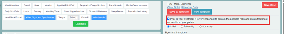 Step 3: It is important that this button is ticked after discussing these details to your patient/customer before you can add your diagnosis.