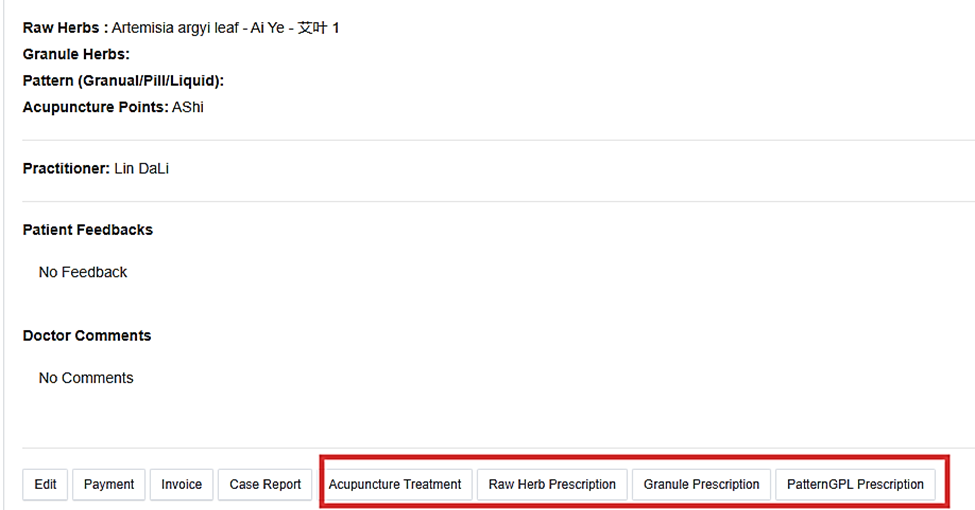 Step 1. Login your Fogo practitioner account and prescribe herbs via case reports. After you save the case, the page will redirect to the client’s case summary. At the bottom part of the page, select the applicable tab based on your prescription.