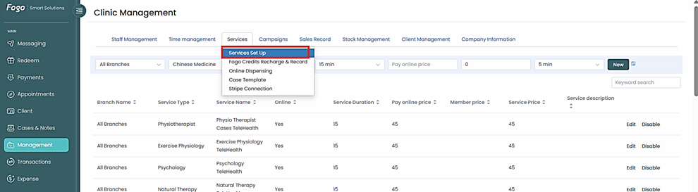 Fogo lets you customize your services with complete details like category, duration, and pricing. Setting these up beforehand ensures smooth appointment booking and accurate reporting.