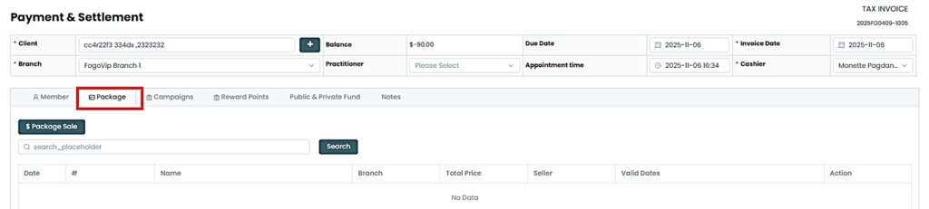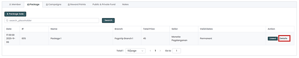 Step 3: Go to the “Package” tab beside “Member” and “Campaigns”, then click Package Sale.