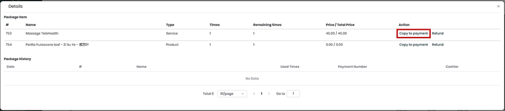 Step 5: Review the package details (name, included sessions, price, and validity).