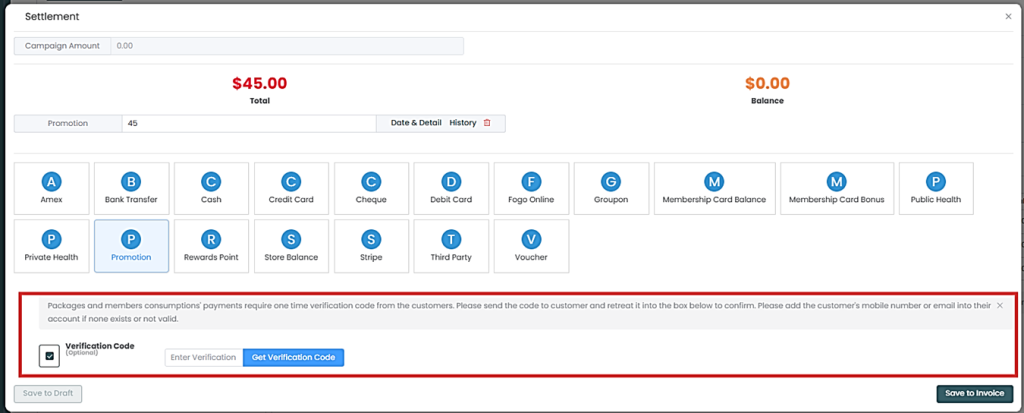 Step 8. Voucher will auto-populate on the Settlement page. Click “Save to Invoice” then print or email.