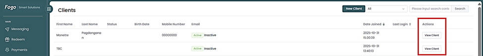 Step 3: Under “Actions” click “View Client” to open their profile page.
