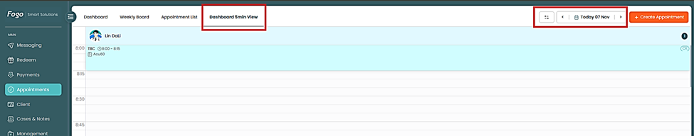 Step 1: Go to the Appointments tab from the left menu, then click Dashboard.
