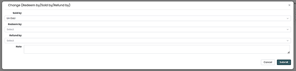Step 4. The pop up page will show you fields you can update such as “Redeem by”, “Sold by” or “Refund By”.