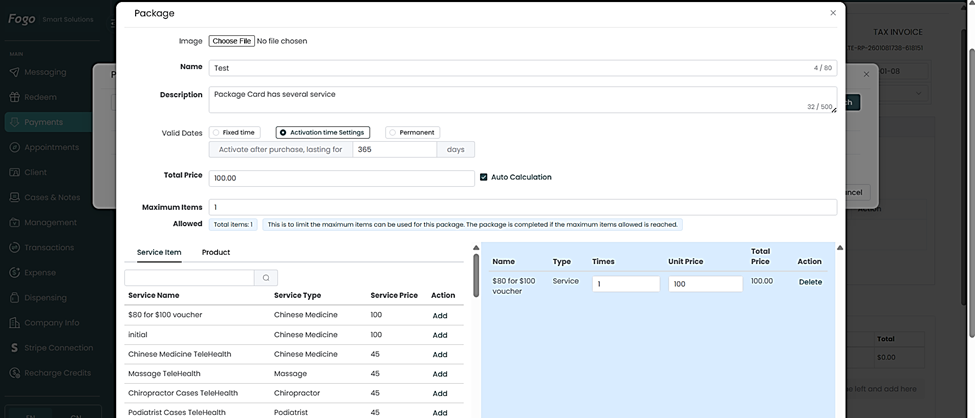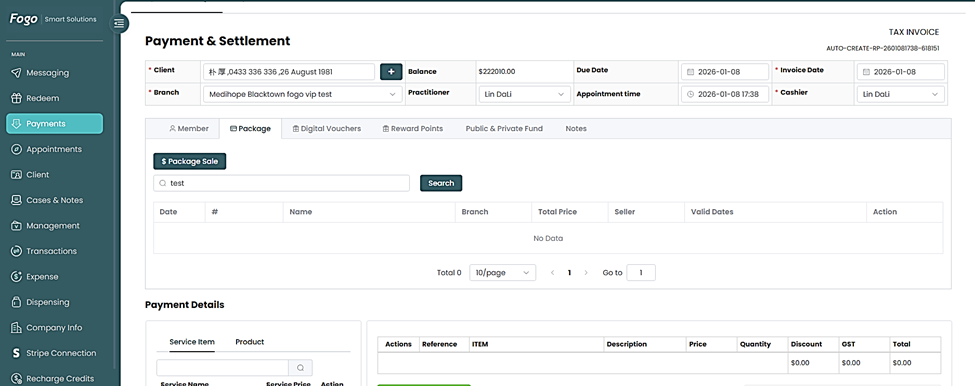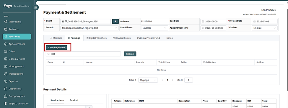 Step 1. Login your Fogo practitioner account and go to Payments>Payment New Page.