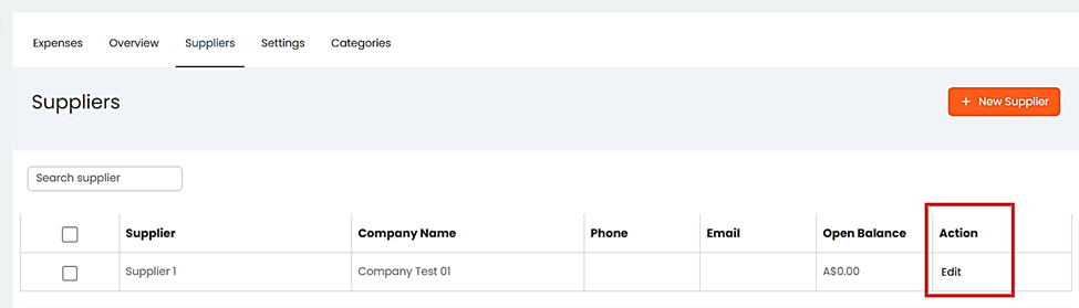 Step 3. To edit information, simply open the supplier record from the list and click Edit to update their information.