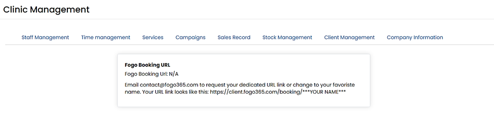 Step 1. Go to Management > Company Information > Fogo Booking URL.