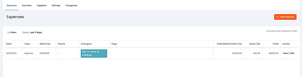 Step 2. Under the Expense page, you’ll find different tabs such as: