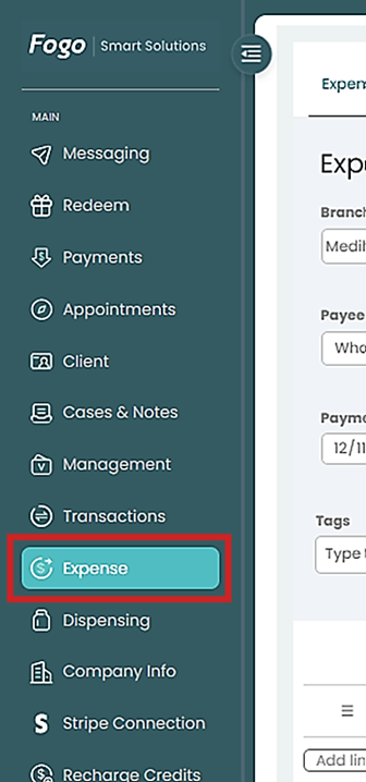 Step 1. Go to the left-hand menu and click Expense.
